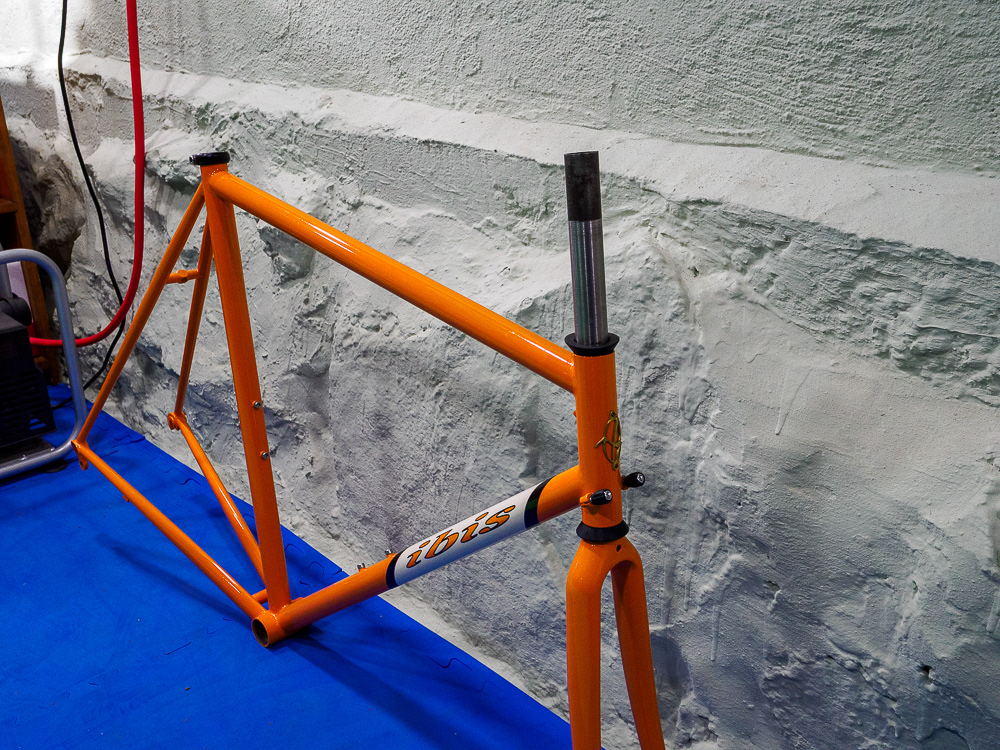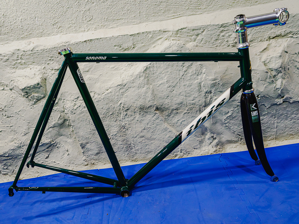 FOR SALE. Two Ibis Spanky/Sonoma framesets. The orange one has a fresh paint job and an unused, uncut Time carbon fork. The green one is also immaculate, and has both a Chris King headset and a rare Kestrel carbon fork with a titanium steerer tube.